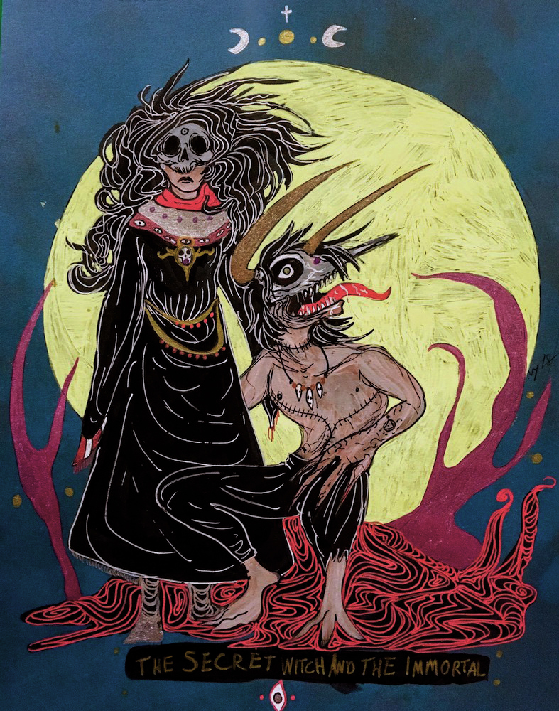 9x12 blue cardstock. done with black ink and gelly roll pens.