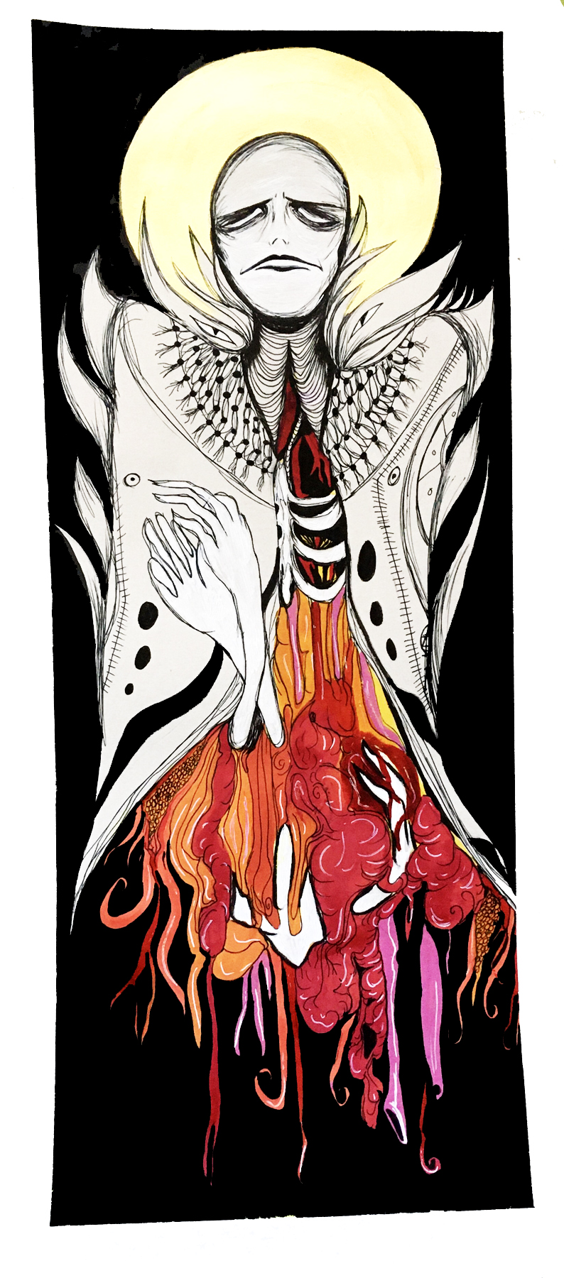 particularly long ink and watercolor drawing. It's roughly over 24 inches tall and 12 ish inches long.